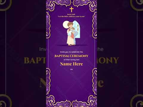 Celebrate your child's Baptism in a captivating and unique way with our Baptismal Invitation Video. This digital invitation video features elegant purple hues adorned with beautiful golden floral patterns and a heartfelt Christian illustration, making it perfect for welcoming your little one into the faith. Personalize the invitation with your son’s name, date, time, and venue to create a truly special invitation that reflects the sanctity of the day.