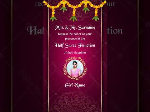 #VG2059 #HalfSareeFunction #LangaVoniInvite #SouthIndianCeremonyCard #CulturalMilestoneInvite #TeenageRitualCard #ElegantIndianDigitalInvite #TraditionalVideoInvitation #HalfSareeCeremony #MaroonThemeInvite #SouthGirlComingOfAge #WhatsAppInviteCard #GirlTransitionCelebration #IndianTeenCeremony #RoyalThemeECard #DigitalIndianInvitation #FestiveVideoInvite #CustomInvitesOnline #VideogiriHalfSaree #HinduTraditionEInvite