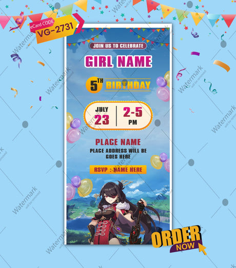 Rs. 599.00Rs. 800.00Unit price /UnavailableChongyun-Themed Birthday Invitation | Adventure Party Invite | VG-2730