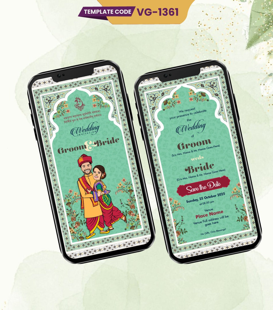 #SaveTheDateWeddingCard #CaricatureWeddingEInvite #IndianWeddingInvitation #CustomWeddingECard #TraditionalWeddingInvite #EcoFriendlyWeddingInvitation #ElegantSaveTheDateCard #CustomizableWeddingEInvite #FloralWeddingInvitation #RoyalIndianWeddingCard #ClassicWeddingAnnouncement #WhatsAppWeddingInvite #DigitalIndianWeddingCard