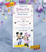 Mickey and Minnie Birthday Invitation | Cute Cartoon Theme 1st Party E-Card | VG-2797