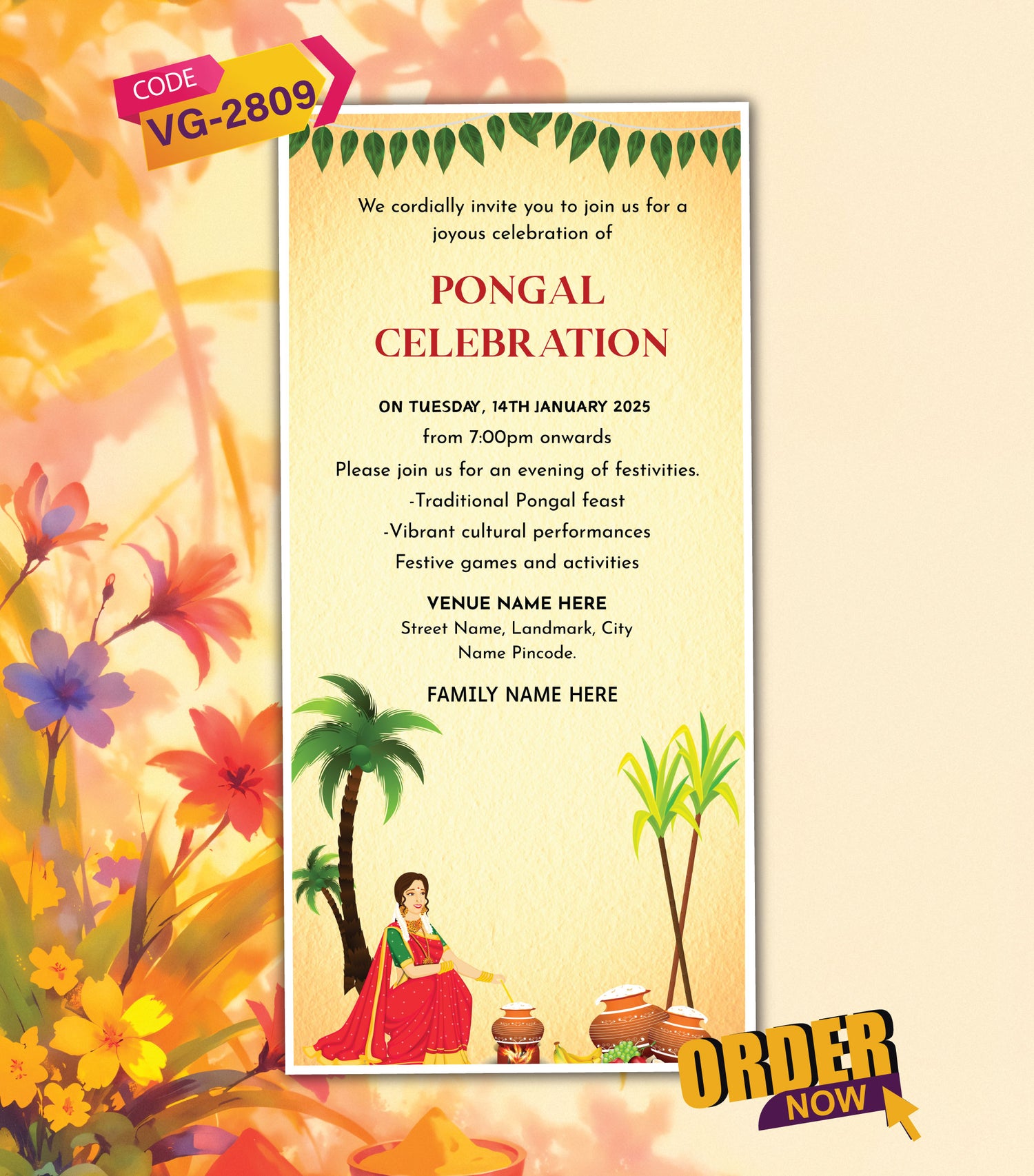 Pongal Celebration Invitation Card | Traditional Tamil Festival E-Invite | VG-2809